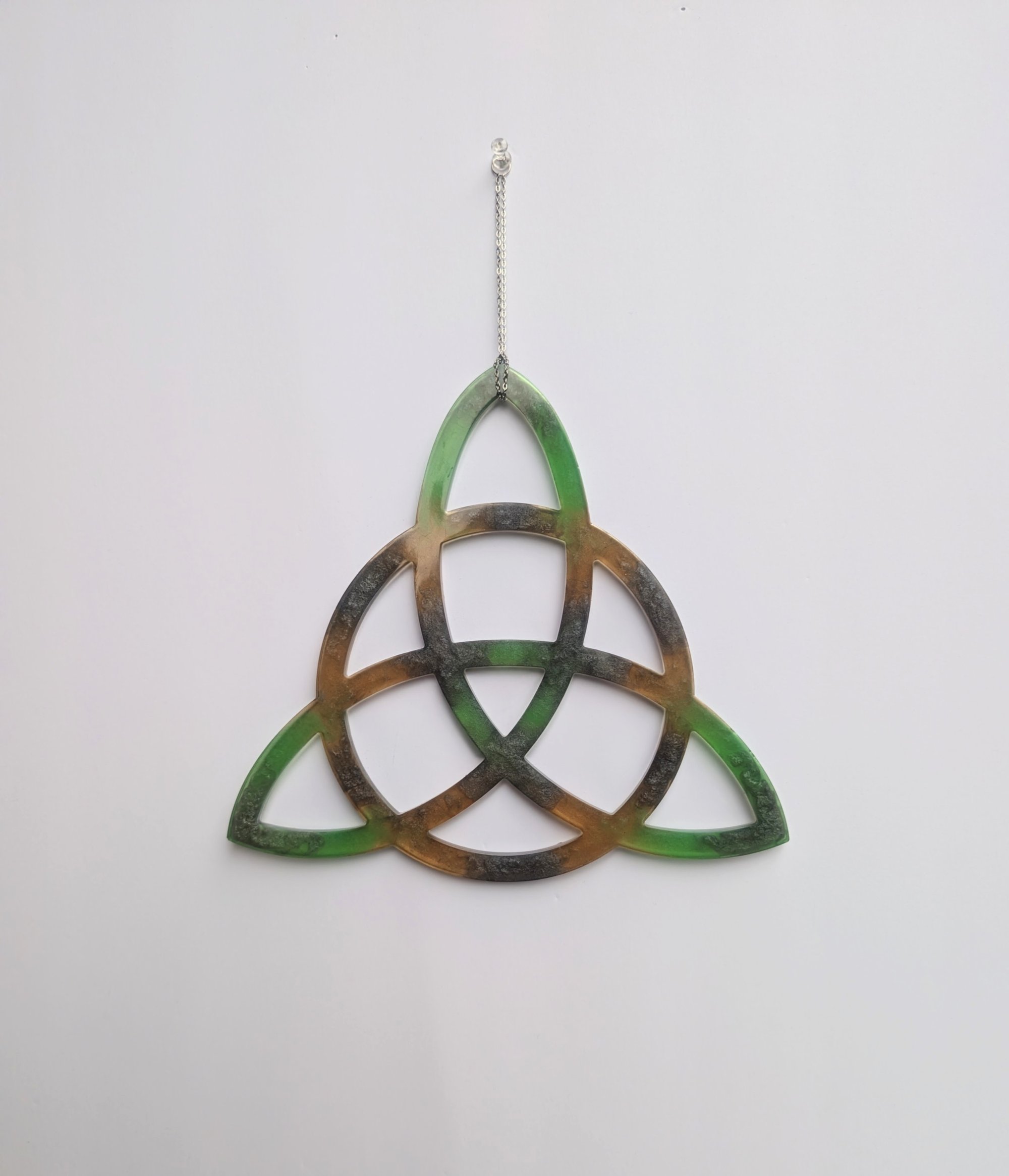 9" in height Comes with a removable hanging chain and window suction hook. I made the chain removable on these because you may want to lean against wall or lay flat.